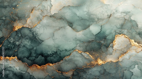 Abstract design featuring teal and gold marbling patterns.