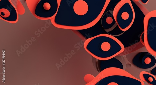 Abstract design featuring vibrant orange and navy shapes with circular patterns
