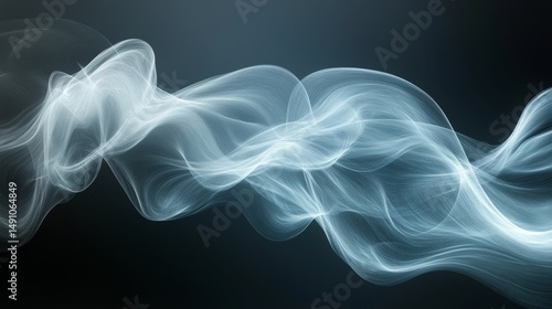 Abstract design of flowing white smoke against a dark background.