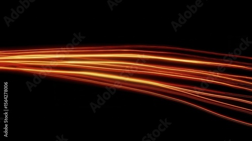 Abstract design of multiple orange light trails on a black background.