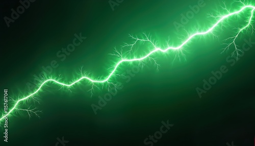 Abstract design with bright green electrical spark lightning. Dynamic energy effect on deep green background. Modern abstract electric backdrop suitable for poster header banner design. Eco-friendly
