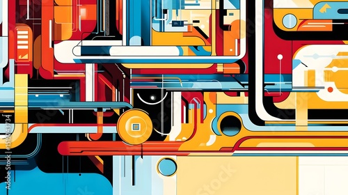 Abstract design with geometric shapes and vibrant colors.