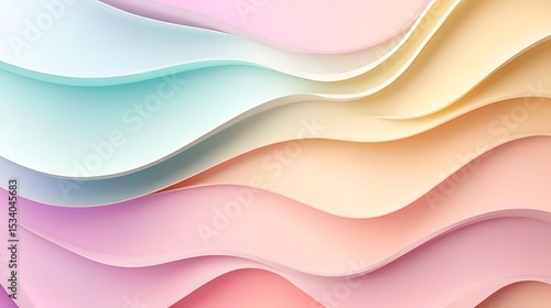 Abstract design with layered, wavy shapes in pastel colors.