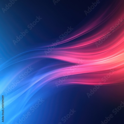 Abstract design with vibrant blue and pink wavy lines against a dark background, glowing effect, digital art style
