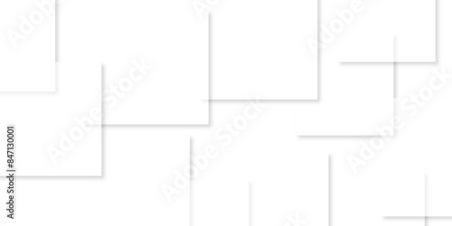 Abstract design with white transparent material in triangle and square shapes on white background. Square in bright light with paper texture.Modern and creative design with different size white boxes.