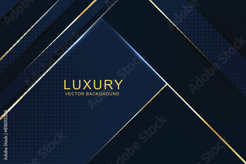 Abstract diagonal blue background with golden lines. Luxury style
