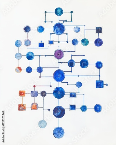 Abstract diagram featuring interconnected circles and lines, showcasing a blend of cool colors and unique geometric designs.