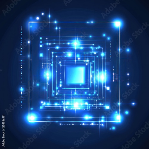 Abstract Digital Art: Glowing Blue Circuitry