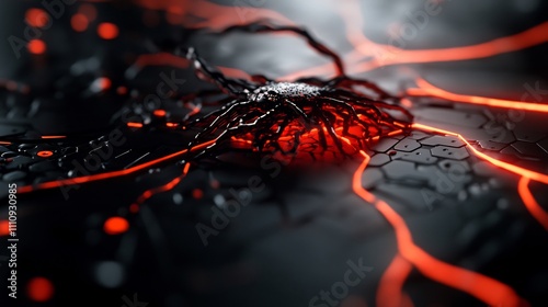 Abstract Digital Art: Glowing Lava-like Veins and a Dark Central Node