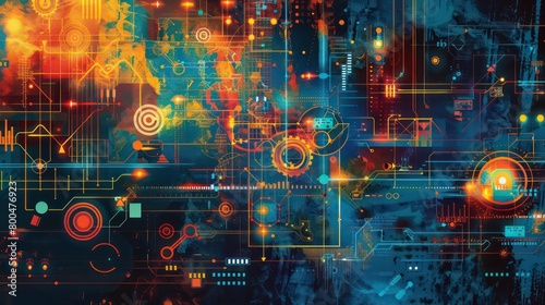 abstract digital artistic background with a dynamic composition featuring functionality and network flow
