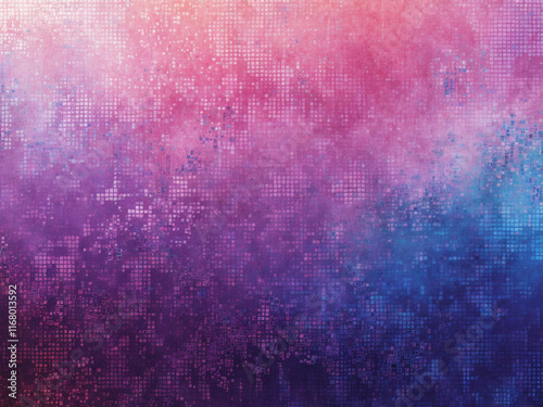 Abstract digital artwork featuring a textured mosaic of small squares in vibrant shades of pink, purple, and blue, creating a modern and futuristic aesthetic.