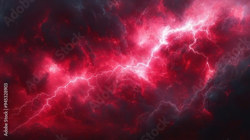 abstract digital artwork of crimson lightning bolts crackling across a stormy sky creating a dramatic and ominous atmosphere