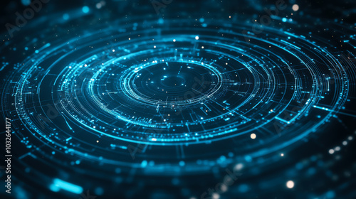 Abstract digital background featuring glowing circular patterns and bright details in a futuristic design with a soft blue ambiance
