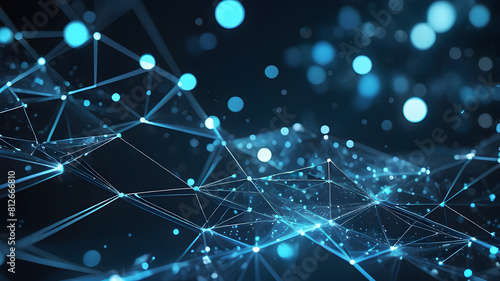 Abstract Digital Background Glowing Geometric Shapes in Cool Blue Tones