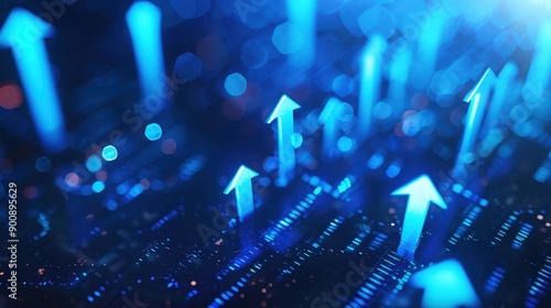 Abstract Digital Background With Animated Blue Arrows Rising Amidst a Network of Light Patterns. Generative AI