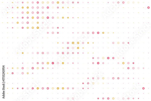 Abstract Digital Background with Colorful Gear and Dot Patterns on a Dark Screen, Representing Technology and Data Flow