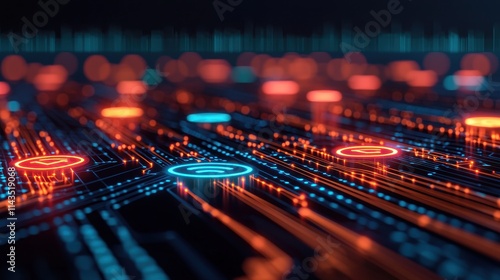 Abstract Digital Background with Colorful Nodes and Circuit Design