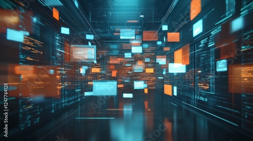 Abstract Digital Background with Floating Data and Connections