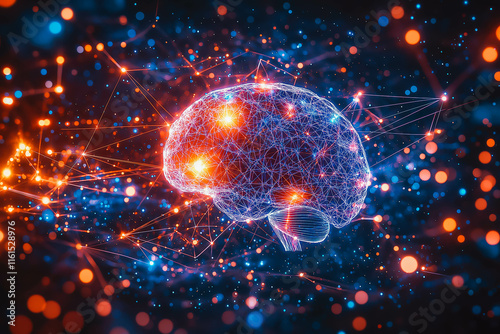 Abstract Digital Brain Surrounded by Holographic Connections and Data Streams