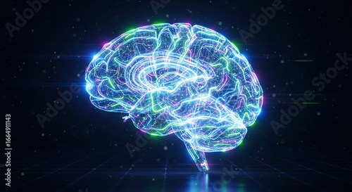 Abstract digital brain with glowing particles, representing artificial intelligence, cognitive function, and the power of the human mind