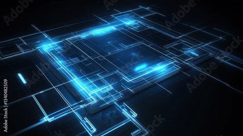 Abstract digital circuit board, glowing lines