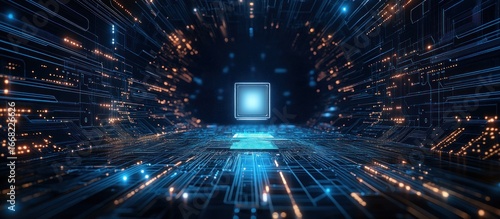 Abstract Digital Circuitry with Glowing Lines and a Central Square