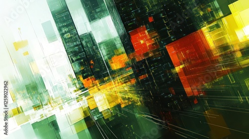 Abstract Digital Cityscape Green Orange Yellow Hues