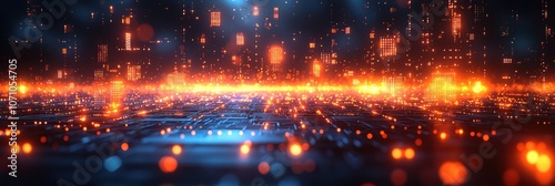 Abstract Digital Cityscape with Glowing Lights and Geometric Patterns