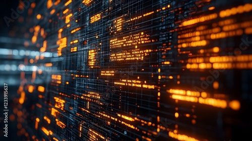 Abstract Digital Data Stream Glowing Orange Code Futuristic Technology Background