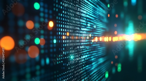 Abstract Digital Data Stream with Blue Lights, Abstract image of a digital data stream with blue lights on a dark background