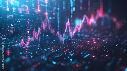 Abstract digital data visualization with vibrant colors and intricate lines representing financial growth.