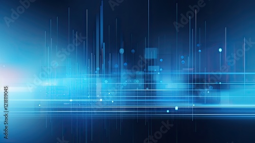 Abstract digital design with blue tones and light streaks, conveying technology and data flow.
