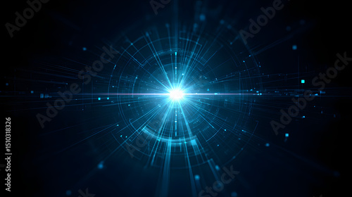 Abstract Digital Energy: A captivating image depicting a luminous burst of digital energy, radiating outwards from a central point against a backdrop of interconnected lines and particles.