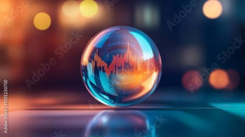 Abstract digital environment with a crystal ball forecasting market movements