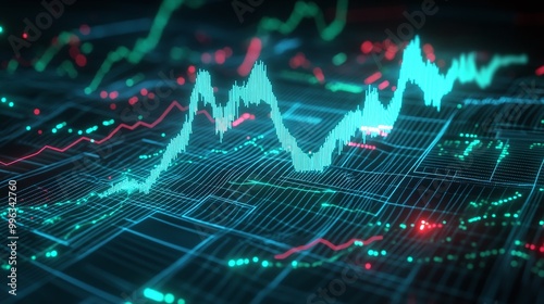 Abstract digital financial chart with glowing lines and data points, representing stock market trends and analytics.