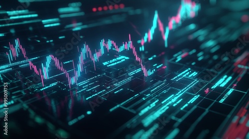 Abstract digital financial graph with vibrant colors, showcasing data trends and market fluctuations.