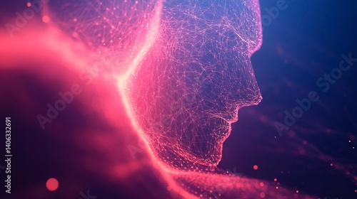 Abstract Digital Human Silhouette with Neon Light Design Background