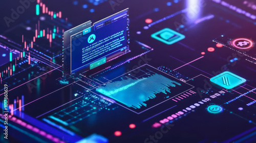 Abstract digital interface analyzing data trends and security threats in a high-tech environment at night