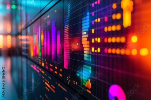 Abstract digital interface with colorful data visualization