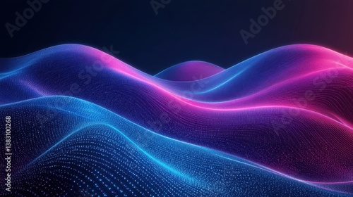 Abstract Digital Landscape with Glowing Particles in Blue and Pink Tones for Modern Backgrounds and Visual Effects
