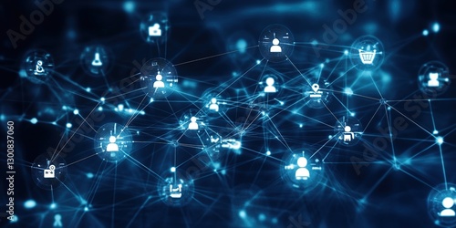 Abstract Digital Network Connections: Glowing Blue Nodes and Links on Dark Background