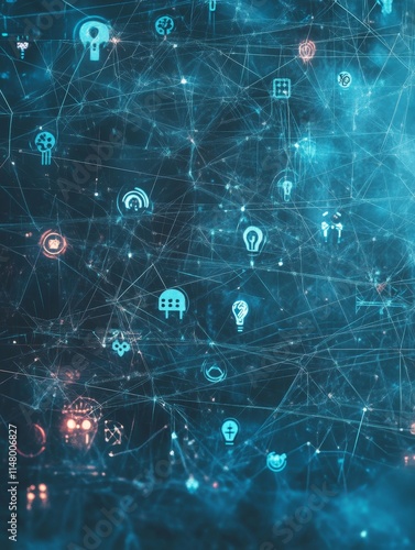 Abstract Digital Network Connections With Glowing Icons Illustrating Technology and Innovation