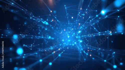 Abstract digital network with glowing blue nodes and connecting lines creating a sense of depth and futuristic technology