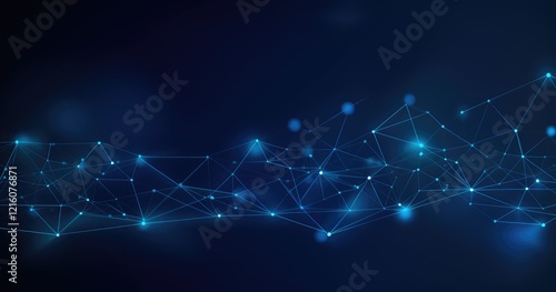 Abstract digital network with glowing nodes and connections on a dark background.