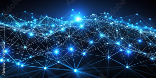 Abstract Digital Network with Illuminated Nodes and Connecting Lines