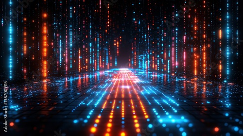 Abstract Digital Pathway: Neon Lights and Data Streams