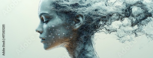 Abstract Digital Portrait of a Woman with Digital Data and Lines