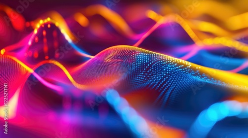 Abstract digital representation of flowing light waves in vibrant colors,