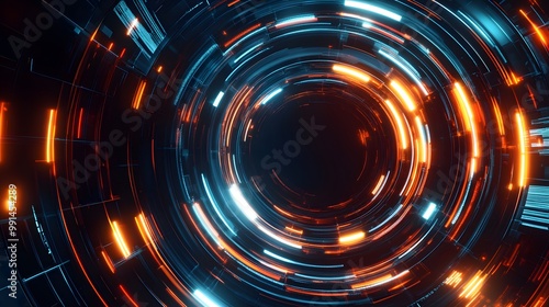 Abstract Digital Ring with Glowing Orange and Blue Lines