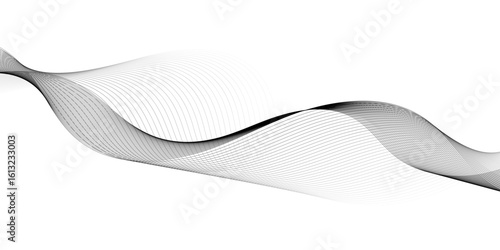 Abstract digital stylized black and grey curved wavy line art element for design white Striped line texture background. Vector illustration.